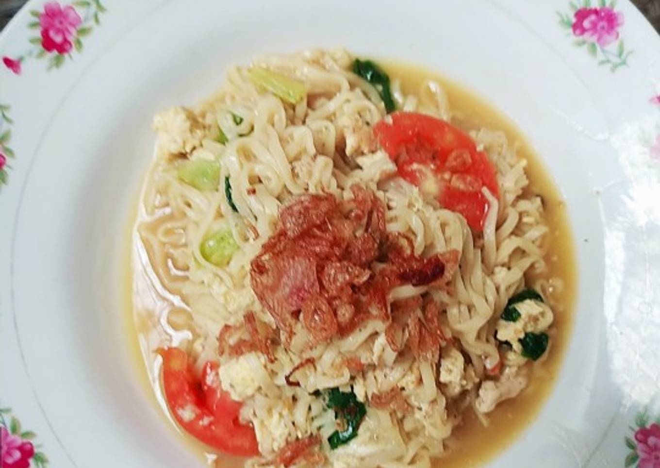 - Jika rasa sudah sesuai, masukkan mie telor, aduk sebentar, lalu masukkan potongan tomat