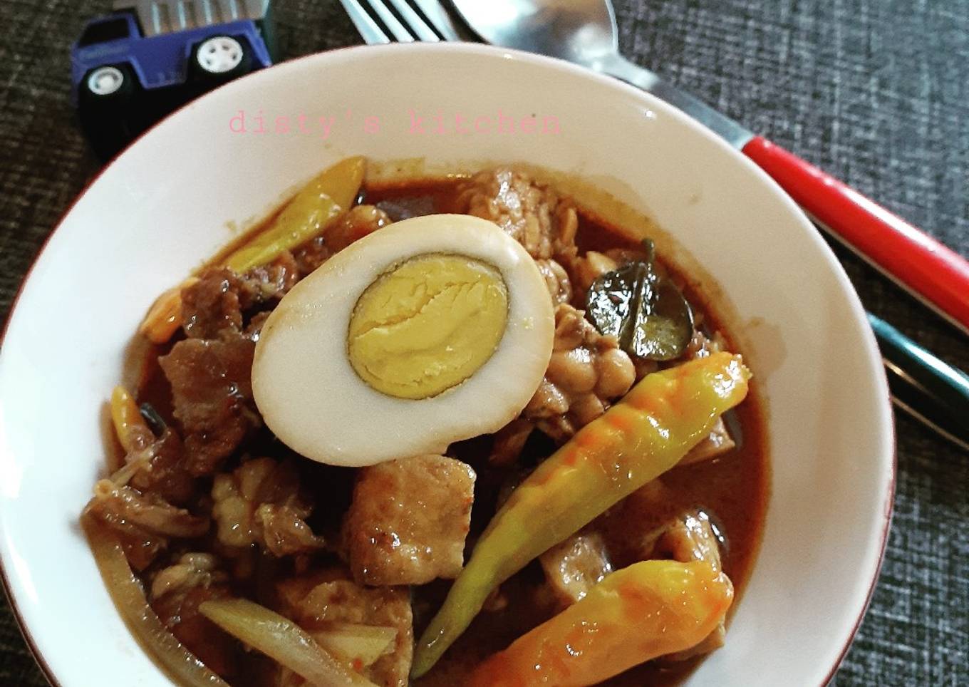 - Masukkan daging & kaldunya. Didihkan. Masukkan telur, tempe & tahu. Aduk rata.