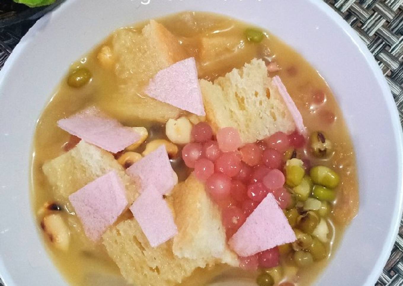Di saat covid begini, tiap tukang sekoteng lewat depan rumah, rasanya pengeeeen banget beli tapi takut. Abis si mamang penjualnya pake maskernya di dagu π Akhirnya diniatin bikin sekoteng sendiri. Hari Kamis malem udah ngincerin resepnya mbak Fransiska Arie untuk liat bahan2nya. Jumat pulang kantor mampir di supermarket buat belanja bahan2nya itu. Sabtu abis beres masak, langsung cuzzz bikin sekoteng! Waktu mulai nyiapin bahan dan sudah selesai merebus pake metode 5.30.6 taunya baru baca tips dari mbak Fransiska yg hrs pake pandan dan gula buat rebusan sagu mutiaranya. Untuuuung masih bisa ditambahin di menit ke-31 π π π Kayaknya menu sekoteng ini yg paling ribet di dalam minggu ini deh π€ karena hrs pake rebus2 3 jenis bahan (sagu mutiara, kacang ijo dan kolang kaling), sangrai dan ngupas kacang tanahnya, potong2 roti dan terakhir baru bikin kuah jahenya. Tapi puasssss banget! Karena rasanya juga ga kalah ama rasa sekotengnya si mamang. Kebeneran saya juga dapet simping yg warnanya pink di supermarket, jadi makin mirip ama yg si mamang... π₯°π₯°π₯°