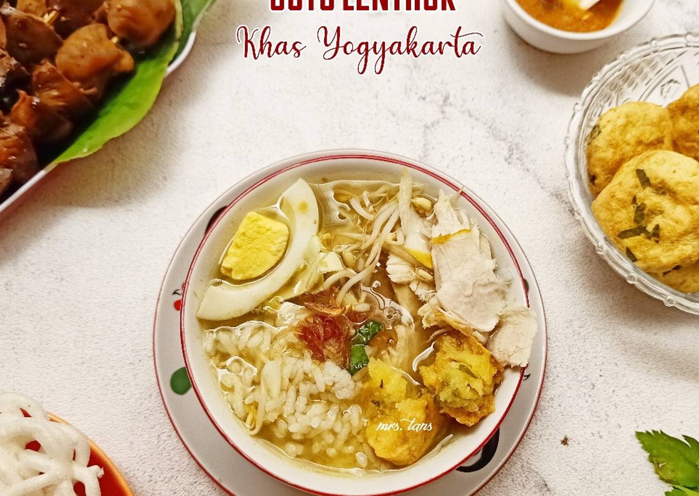 Selain gudeg, Yogya juga mempunyai soto sebagai makanan khasnya. Soto di Yogya umumnya berkuah bening. Salah satu varian soto yg khas di Yogya adalah soto Lenthok. Bila dilihat sekilas, soto lenthok ini tidak jauh beda dg soto lainnya, yaitu berkuah bening, berisi sohun, suwiran ayam, tauge dan daun kol. Ciri khas soto ini terletak pd perkedel ketela atau yg biasa disebut Lenthok. Selain mendapatkan 1 bh lenthok dlm semangkuk soto, lenthok biasanya jg disediakan terpisah sbg lauk pendamping. Lenthok ini menambah gurih rasa soto, dg tekstur yg garing diluar namun lembut didalam. Recook dari mba Anif Gustina, dg sedikit modifikasi sy tambahkan kunyit, agar kuah soto sedikit berwarna kuning. Selamat mencoba ❤️❤️ Kuliner khas daerah lain bisa dilihat di #KulinerKhasNusantaraMrsTans #PekanRayaSoto #PekanPosbarSoto #CookpadCommunity_Malang #PejuangGoldenApron3 #Week43