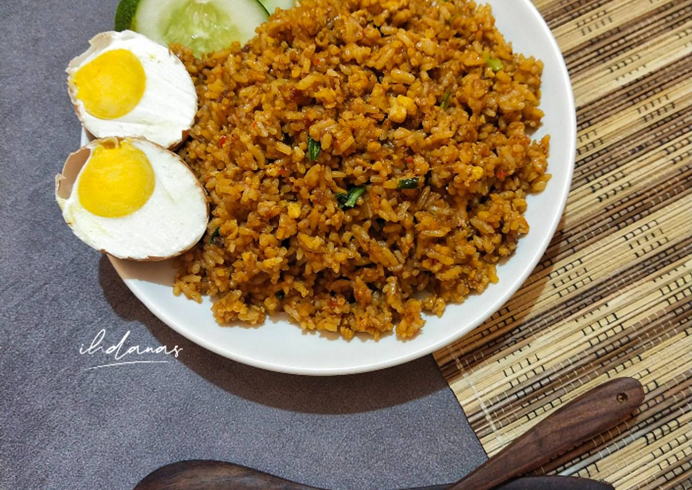 Khas rempah jawanya kerasa, tidak seringan nasi goreng judul atau kampung, tapi ini legit. Rasanya berkelas. ♥️ Tips agar rasanya legit dan meresap seperti abang-abang. 1. Bumbunya dihaluskan. Pakai cobek lebih sedep. Karena saya aliran no ribet, jadi saya blender pakai sedikit minyak. Hehe 2. Jangan skip kemiri, karena konon katanya, ini yang membuat nasi goreng ala Abang-abang Jawa, jadi tambah gurih legit. Juga porsi bawang merah harus lebih banyak dari bawang putih 3. Pemberian kecap. Pastikan mengaduk cepat dan tepat. Diberi kecap ketika nasi goreng sudah benar-benar kering, diaduk cepat dengan api besar. Ini akan membuat nasi goreng legit istimewa. ♥️ 4. Akan lebih enak lagi kalau memakai nasi pero (tidak mengandung banyak air). Ini saya memakai nasi sisa kemarin. Hehe #CookpadCommunity_Yogyakarta #ResepNasgorIhda #memasakdengancinta #masakituibadah