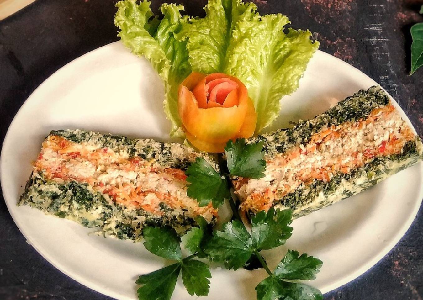 - Penyelesaian susun semua adonan dalam loyang yang sudah diolesi minyak sayur dan alasi dasar loyang dengan daun pisang (plastik). Dengan cara berlapis lapis. Paling bawah adonan daun pepaya. Diatasnya adonan wortel dan cabe merah, kemudian adonan daging ayam fillet.