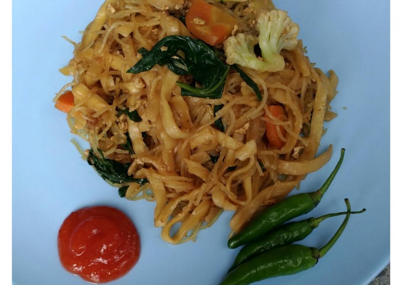 - Masukkan telur di kocok,selanjutnya sayuran,lalu mie&bihun.Semua aduk sampai rata beri kecap asin,manis,saori.Selanjutnya tes rasa.