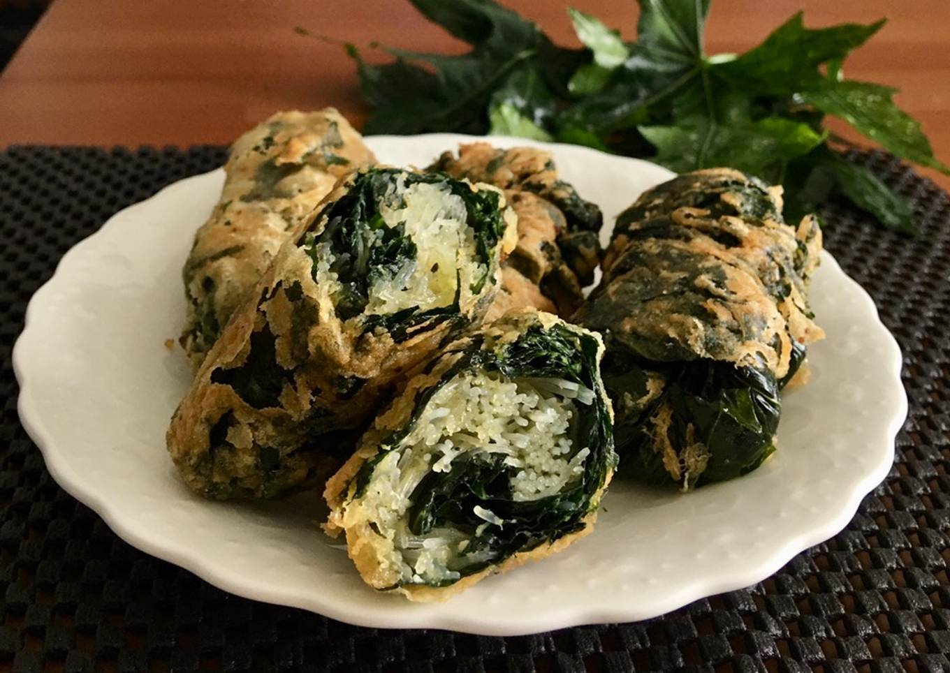 - Susun daun pepaya,tambahkan bihun di atas nya,lalu gulung sprti risol,celupkan ke dlm telur kocok,gulingkan dlm tepung,lakukan sampai habis