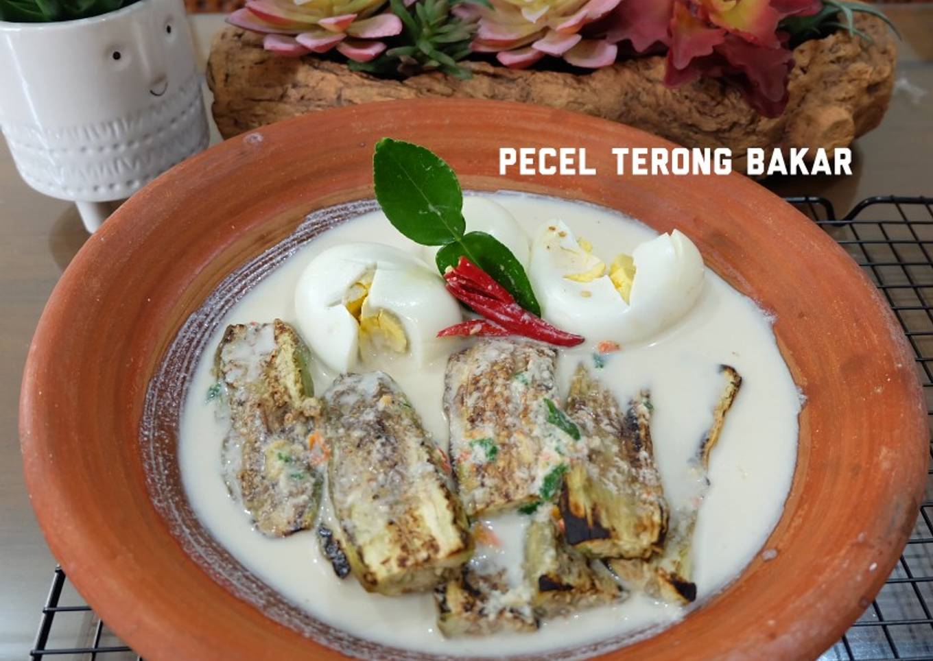 - Tata terong dan penyet telur, lalu siram dengan bumbu santan....Hidangkan pecel terong bakar nyaπ