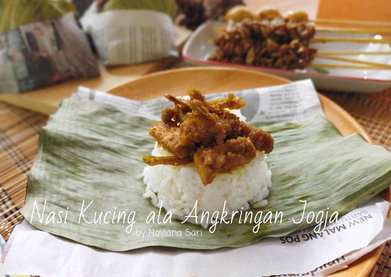 #SemeruColam datang lagi🎉 kali ini bunda Ifahani yang nentuin temanya soalnya beliau kemaren jadi star of the month di #CookpadCommunity_Malang👏 berhubung beliau memilih tema olahan Yogyakarta jadi mamak langsung nostalgia dan kepikiran buat masak-masak ala angkringan Jogja😁mamak masak ala angkringan Jogja ini ada alasannya 😂singkat cerita, dulu sewaktu masih kuliah semester akhir mamak pernah kabur dari SBY ke Yogya tanpa pamit orang tua dan tanpa bawa uang juga, bawa cuma sedikit banget, pokoknya waktu itu gatau gimana pikiran mamak kok bisa melakukan hal seperti itu😓waktu itu judul skripsi mamak ditolak kemudian mamak sedikit frustasi jadi bawaannya pengen jalan-jalan akhirnya kepikiran buat kabur ke Yogya. Di Yogya mamak nginep di angkringan, makan di angkringan dan kalau kemana mana jalan kaki soalnya Ndak bawa uang😁pernah jalan kaki dari UIN Yogya ke Malioboro, hembb capeknya super duper😎waktu itu juga mamak baru sadar kalau semua teman mamak yg kuliah di Yogya lagi pada pulang juga jadi di Yogya Ndak malah seneng malah makin sengsara😭tapi itu semua menjadi pelajaran bagi mamak di masa sekarang dan selalu rindu ke Yogya 🥰 Angkringan Jogja selalu identik dengan sate-sate an dan nasi kucing. Hampir semua angkringan yang ada di Yogya menyediakan menu tersebut. Harga nasi kucing sangat murah karena porsinya sedikit dan lauknya juga super sederhana yaitu cuma teri dan tempe #NovianaSari #CookpadCommunity_Malang #Colam_KuloNuwunYogya #SemeruColam #SeleraMasakNusantaraYogya